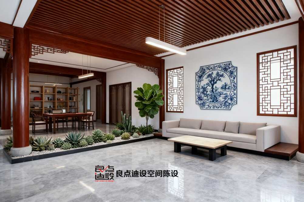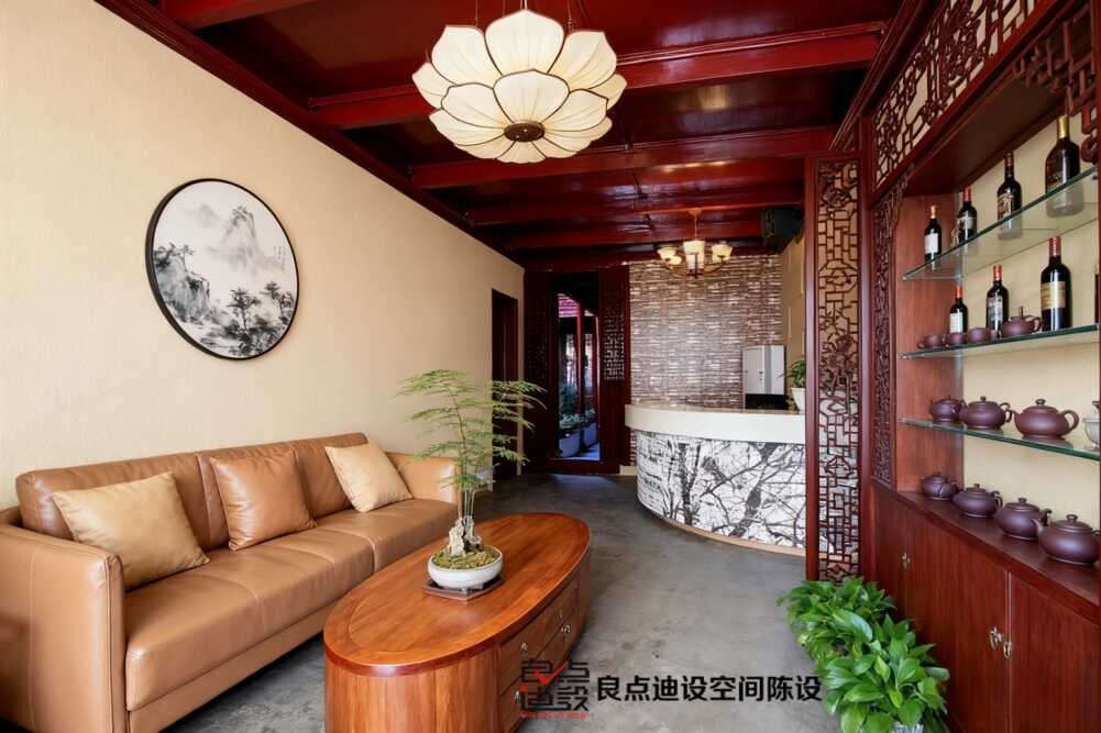 新中式茶館 #商業空間設計 #茶館軟裝 #博古架陳列 #良點設計