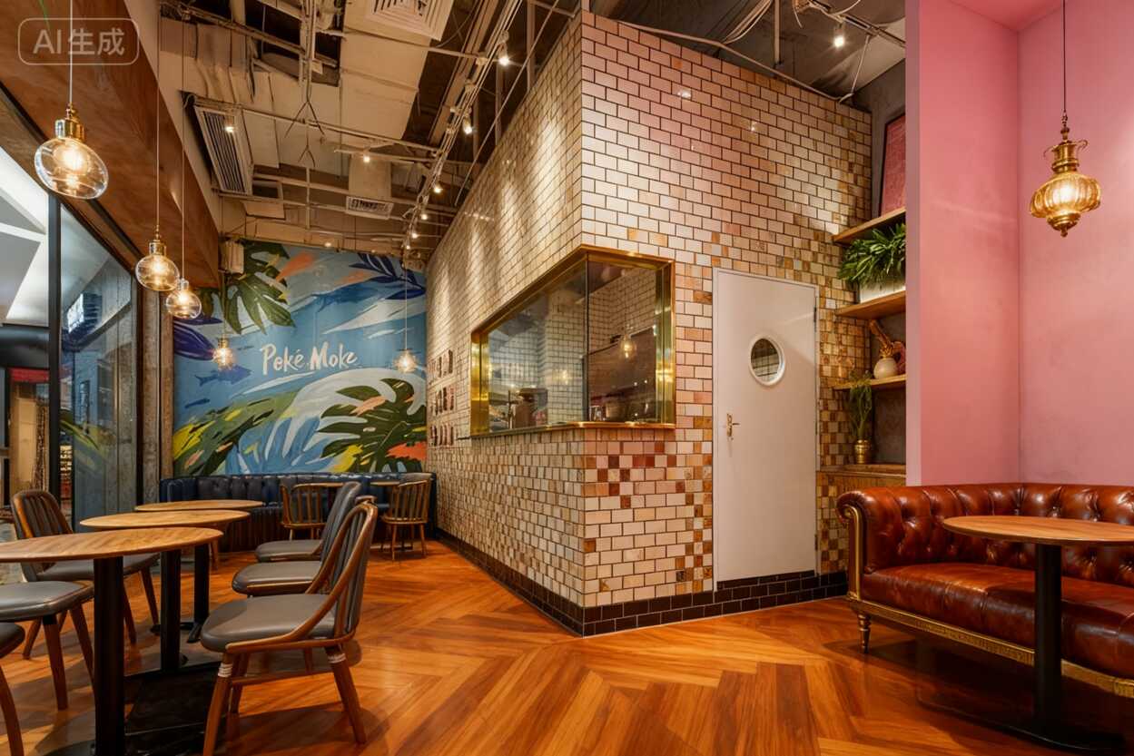 寶子們!今天刷到這家餐廳的軟裝設計效果圖,真的有被驚艷到!開放式廚房的設計也太懂年輕人了——不銹鋼廚具搭配暖黃色吊燈,既保留了工業風的質感,又增添了溫馨感。坐在藍色皮質卡座上,看著廚師現場制作美食,這體驗感直接拉滿!