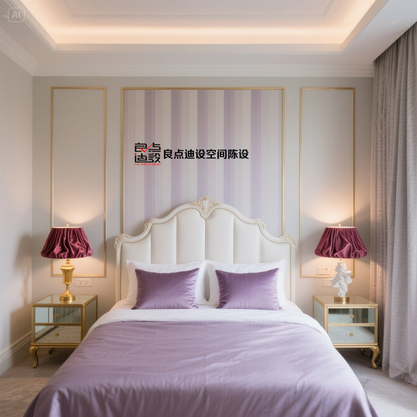 布藝床搭配窗簾和地毯