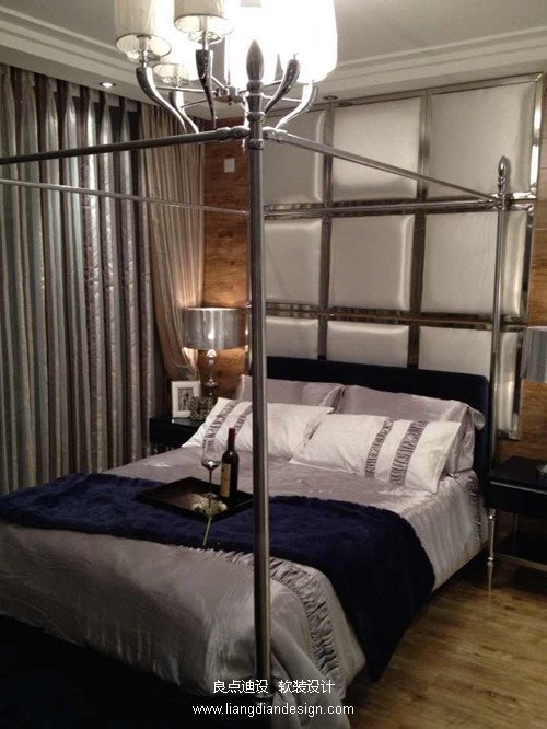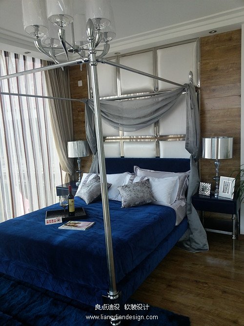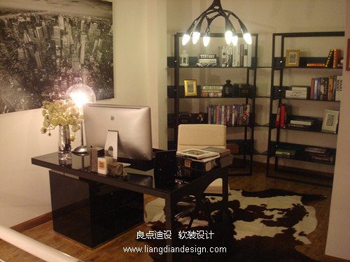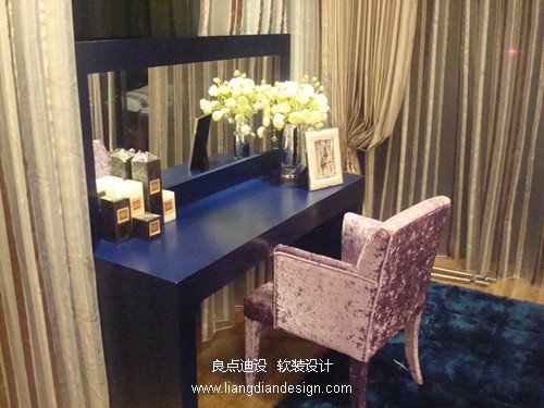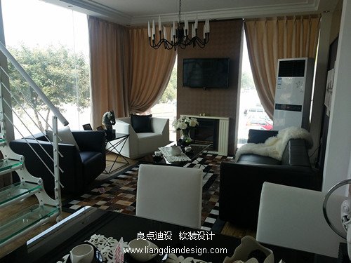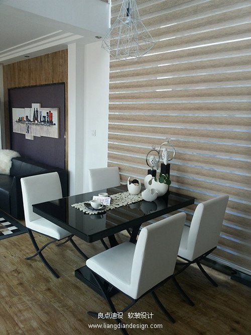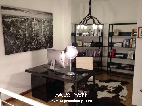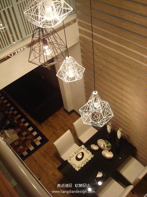 香城壹號(hào)LOFT本身是一個(gè)挑高空間,樓上樓下雙層生活空間,大的落地窗納入明媚陽(yáng)光,樓下起居室與餐廳連接一體,舒適自然,給居住者提供方便舒適的使用環(huán)境,在這樣的空間中我們運(yùn)用大膽時(shí)尚的設(shè)計(jì)風(fēng)格,餐廳區(qū)域是挑高的空間,窗簾形式也采用簡(jiǎn)潔的彩虹卷簾百葉的形式。抽象化的吊燈在空間給人帶來(lái)隨意自然的氛圍。現(xiàn)代感皮面沙發(fā)和漸變拼花皮地毯都給人帶來(lái)時(shí)尚的氣息,二樓樓梯間的照片墻有歡迎客人與展示主人愛(ài)好與生活方式的作用,一個(gè)小桌配一個(gè)復(fù)古的皮沙發(fā),不論是暖暖的下午還是深夜都是一個(gè)品茶看書的好地方,貴族藍(lán)的床品和化妝臺(tái)搭配煙灰色紗幔,為臥室營(yíng)造出典雅浪漫的氣息,LOFT風(fēng)格創(chuàng)意裝飾就這樣被打造出來(lái)。