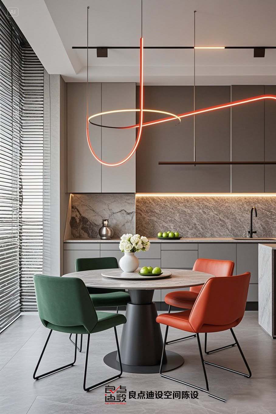 這套軟裝設計就組合拳誰看誰迷糊!灰橙綠配絕了,小廚房秒變雜志封面!??