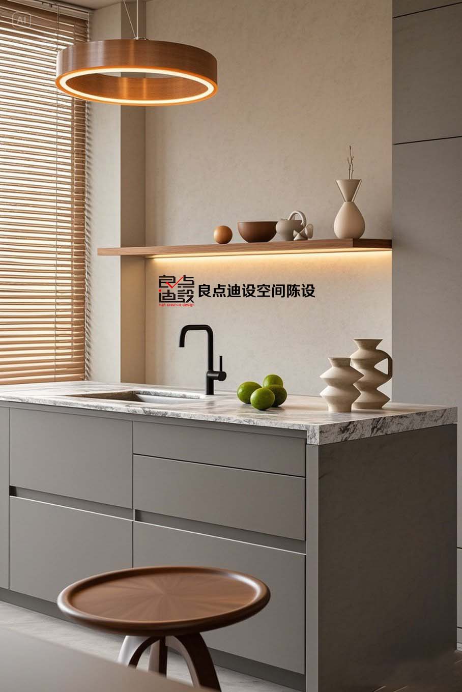 灰調+木色+大理石!這個簡約廚房裝修軟裝設計,我直接抄作業美哭鄰居!