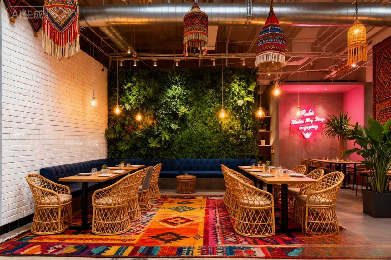 絕了!民族風地毯+霓虹招牌,這家餐廳軟裝設計讓我想直接抄作業(yè)!