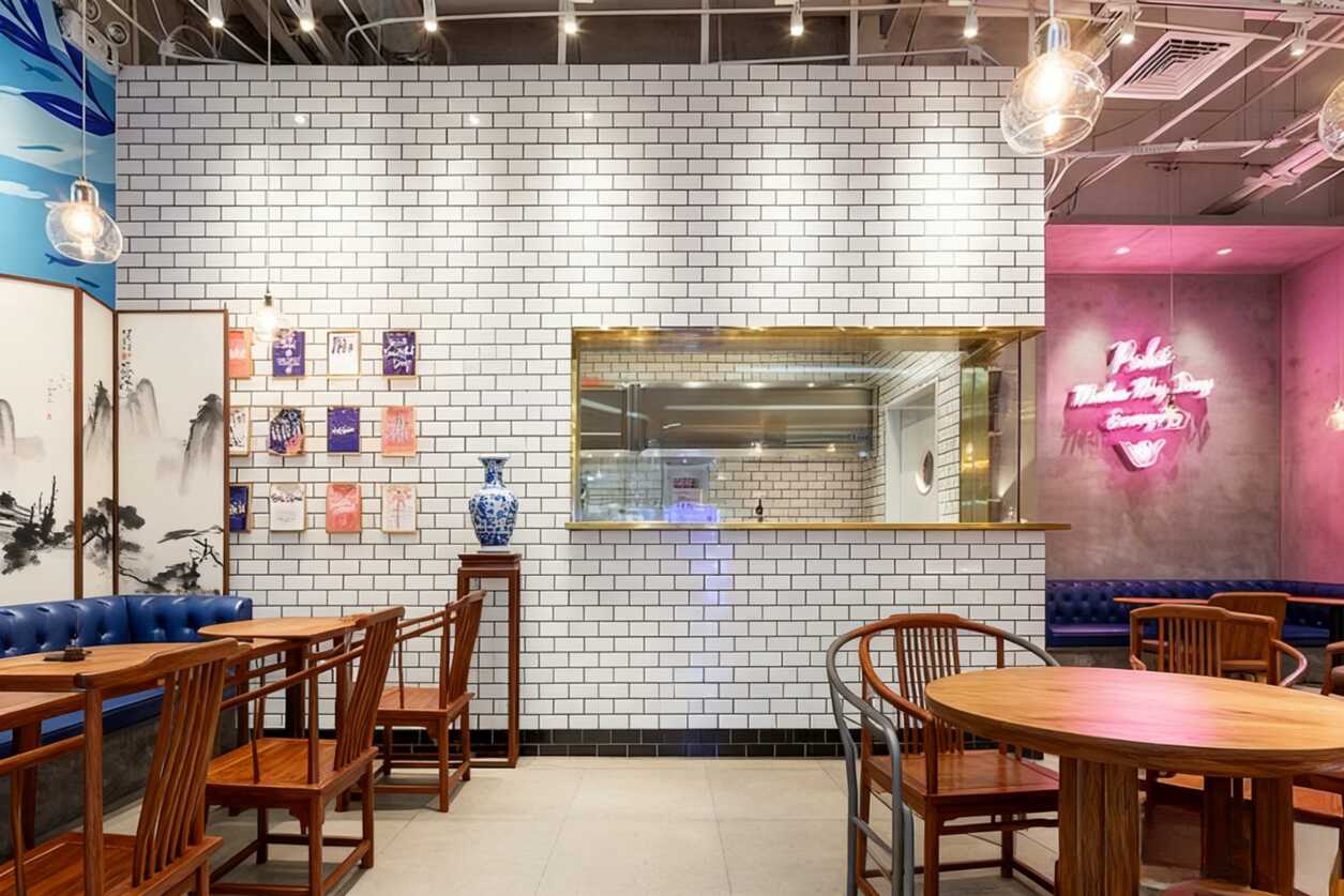 炸裂!這套餐廳軟裝設計用多彩卡片+藍白風,秒變網(wǎng)紅打卡地!
