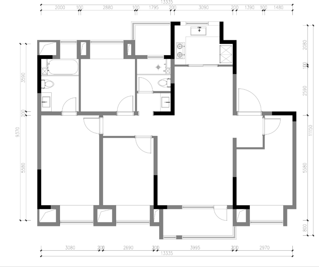 設計思路:基本不更改硬裝結構,在保留四個房間的前提下,增加各個空間的收納空間。北房間用來做多功能房間,以收納和辦公學習為主,保留居住的功能。